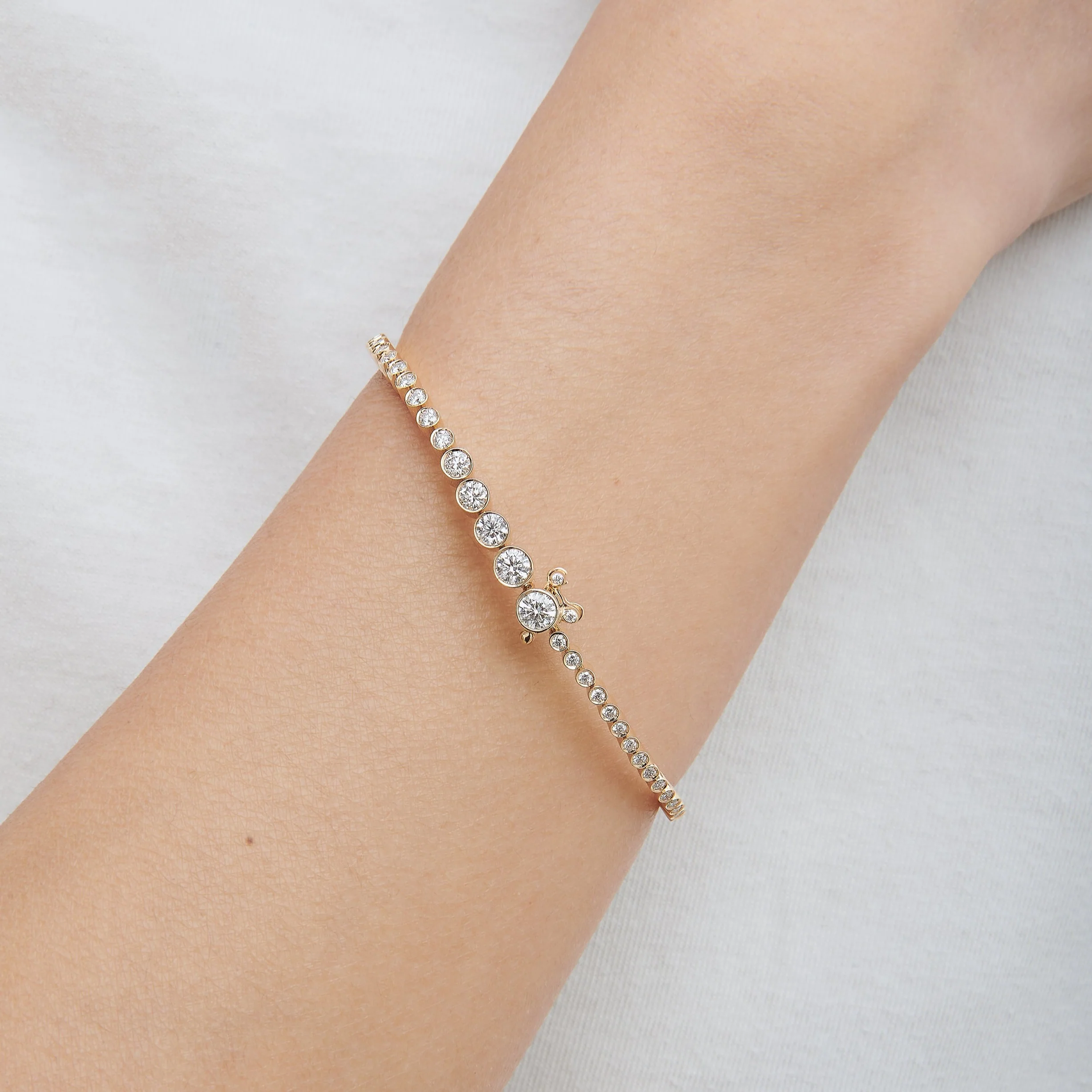 The Bracelet de Tennis Classique is a petit version of Sophie’s diamond tennis bracelet. The Classique features a dazzling row of diamonds that graduate in size and a push clasp fastening.
